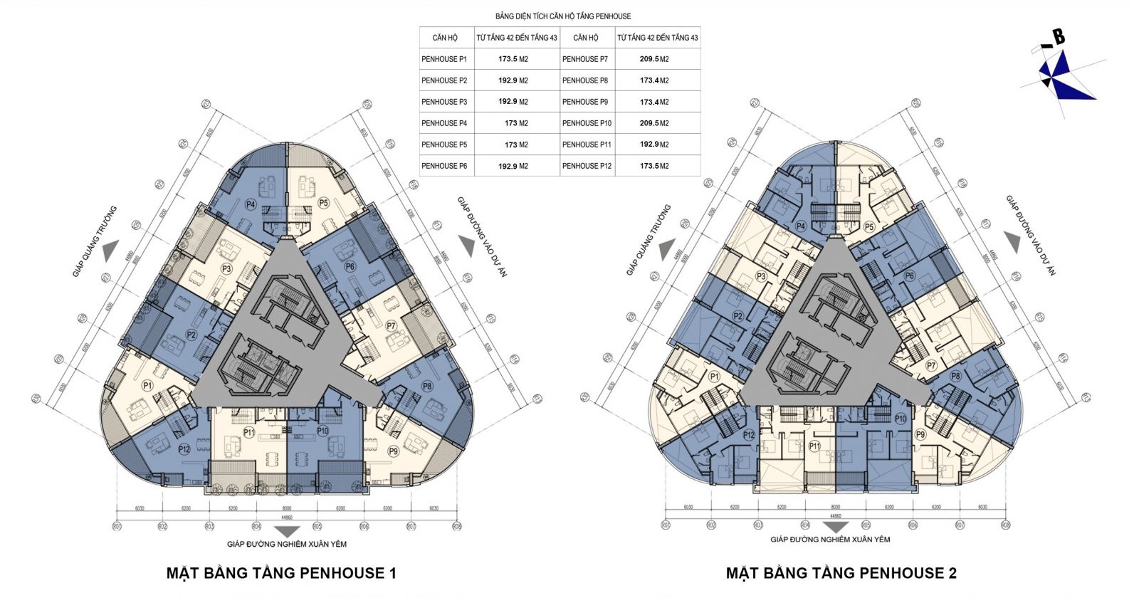 - Tầng 42-45: tầng penthouse.