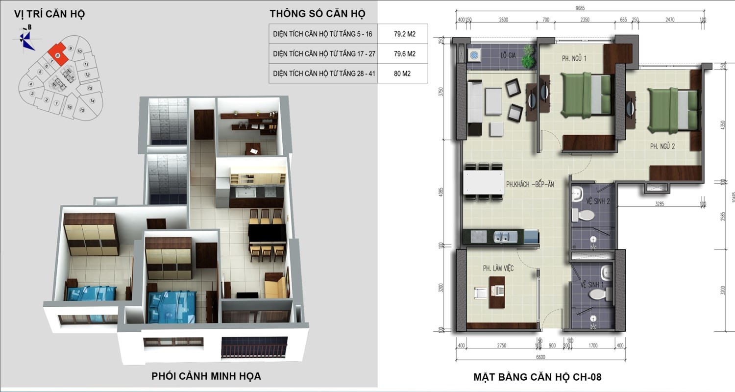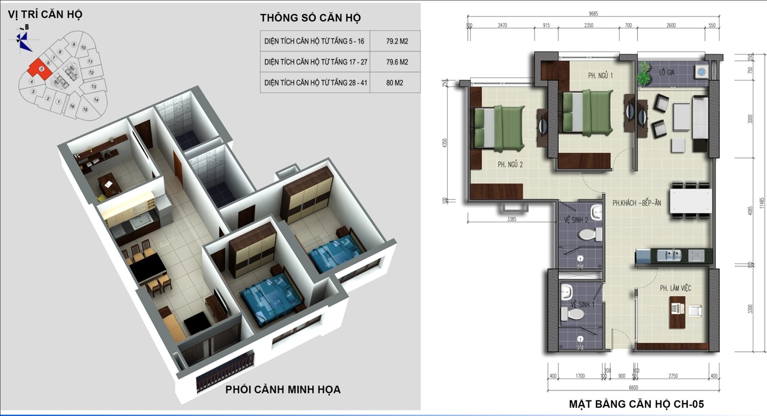 • Diện tích tổng sàn xây dựng: 68.6880 m2