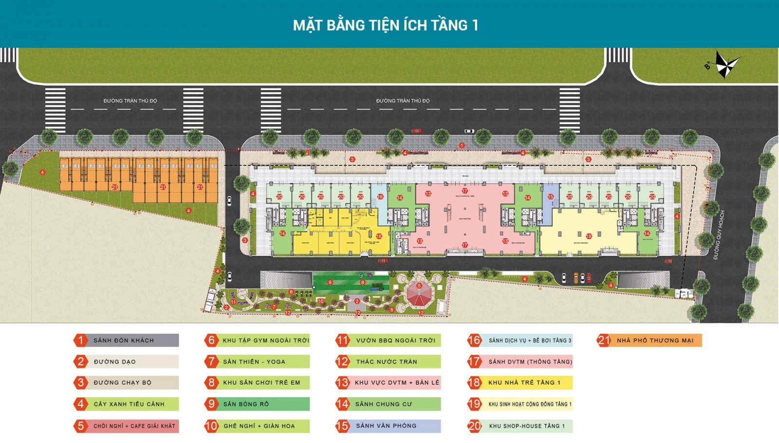 • Trung tâm thương mại (tầng 1 ~ tầng 3): 18.660 m2