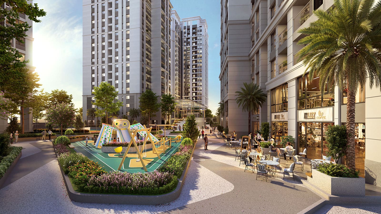 • Các cặp đôi có thể nắm tay đi dạo trên những con đường nhỏ uốn lượn trong nội khu đầy hoa ban, khung cảnh lãng mạn như trong phim Hàn hoặc trở về với góc chill chill riêng tư ngay ban-công nhà, nhìn xuống công viên, con sông Rế và cánh đồng bên dưới. Gia đình vẫn có những bữa tối ấm cúng, những buổi picnic cuối tuần đầy thư thái mà người vợ chẳng phải tất bật chợ búa vì toàn bộ thực phẩm tươi ngon trong siêu thị luôn sẵn sàng phục vụ 24/7.