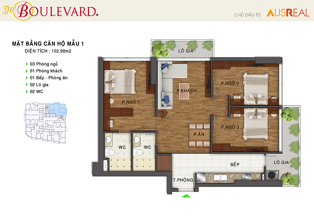 • Đúng như chia sẻ của chủ đầu tư, khu căn hộ The Boulevard được thiết kế rất thông minh, giúp tối ưu hóa diện tích cũng như công năng sử dụng của mỗi phòng. Hệ thống logia, vách kính, cửa sổ được bố trí một cách khoa học giúp cả căn hộ luôn thông thoáng, ngập tràn ánh sáng và gần gũi với thiên nhiên.