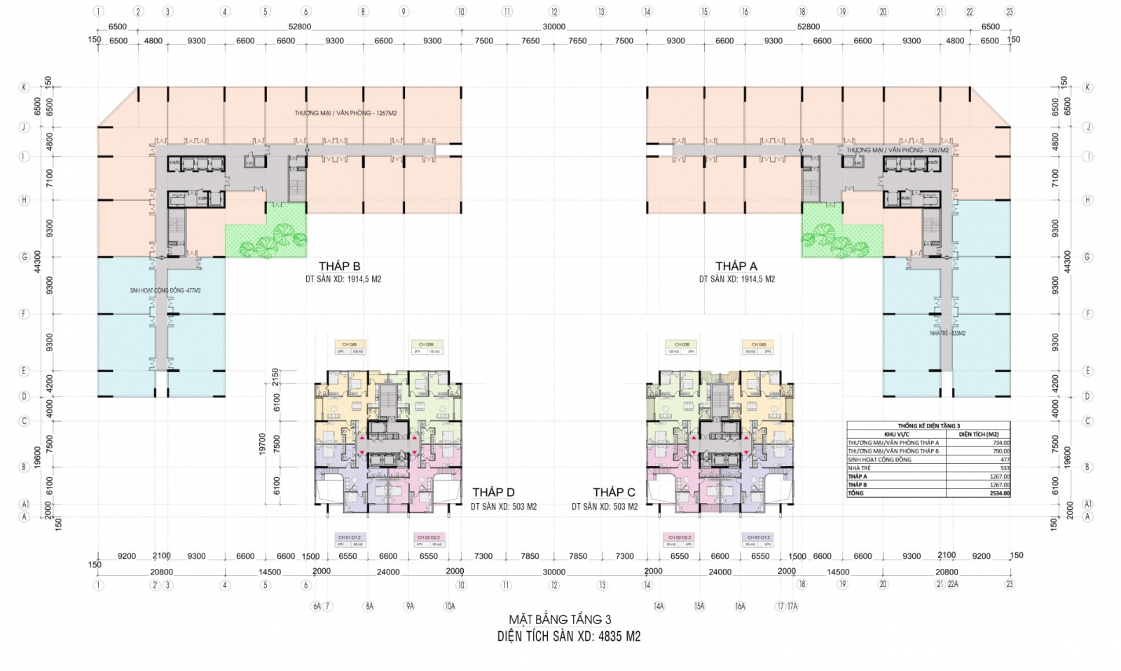 • Tổng diện tích sàn xây dựng: 99,203 m2