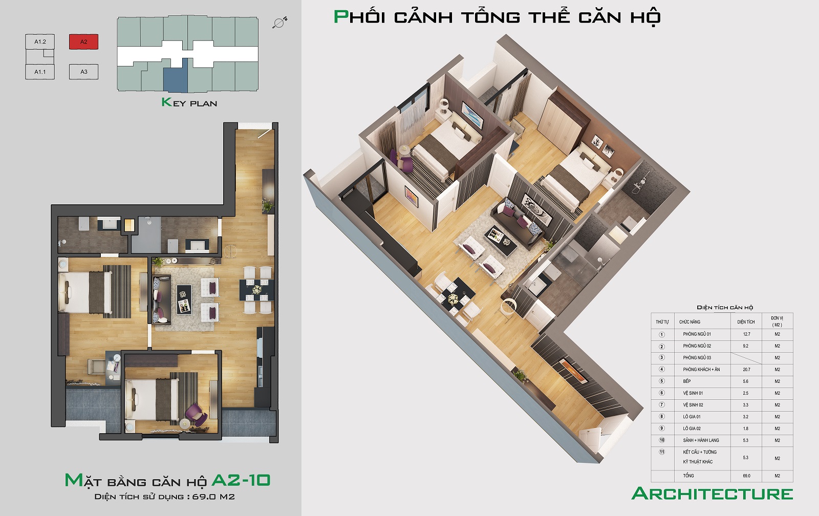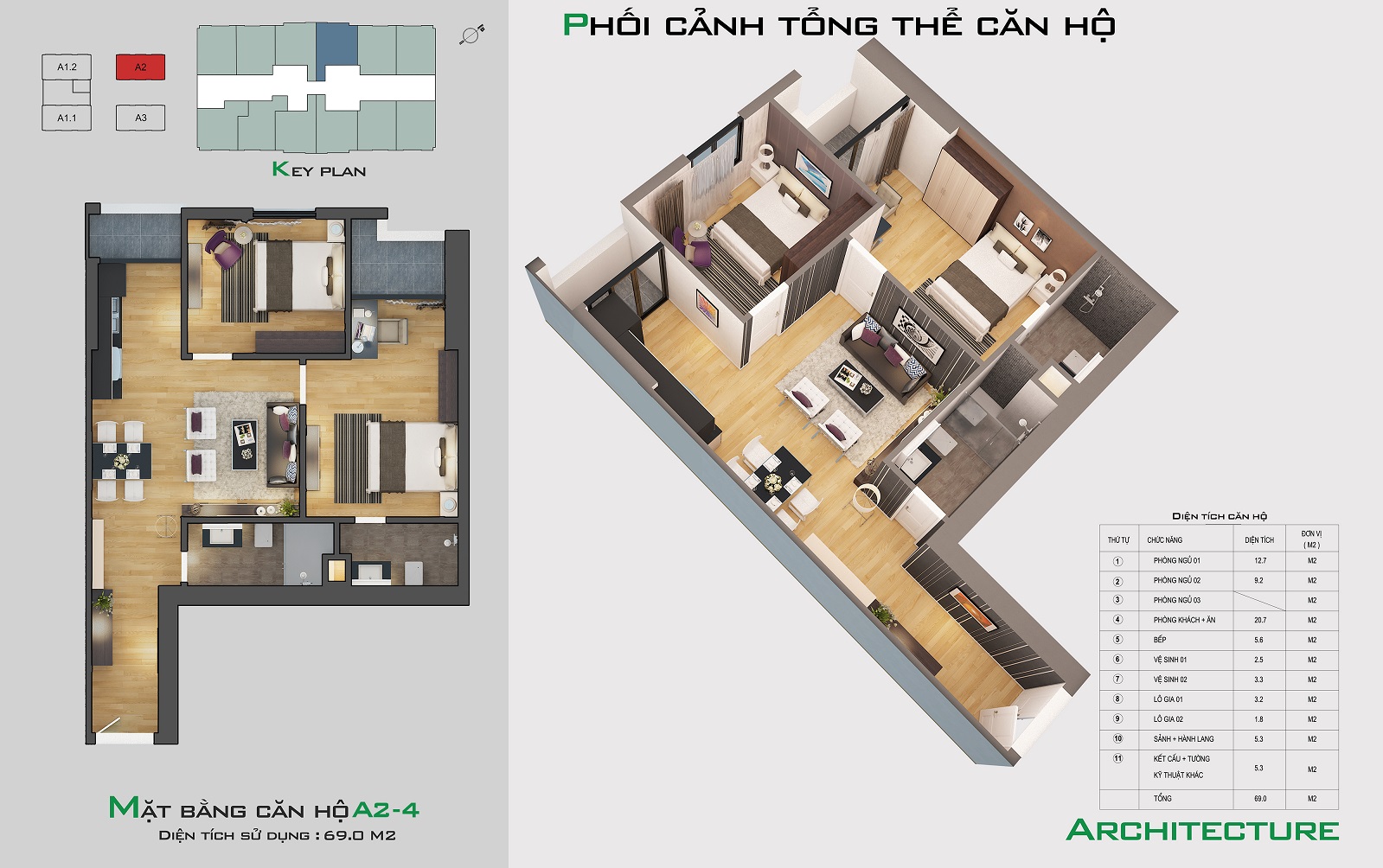 • Diện tích khu văn phòng, dịch vụ, thương mại: 2069m2