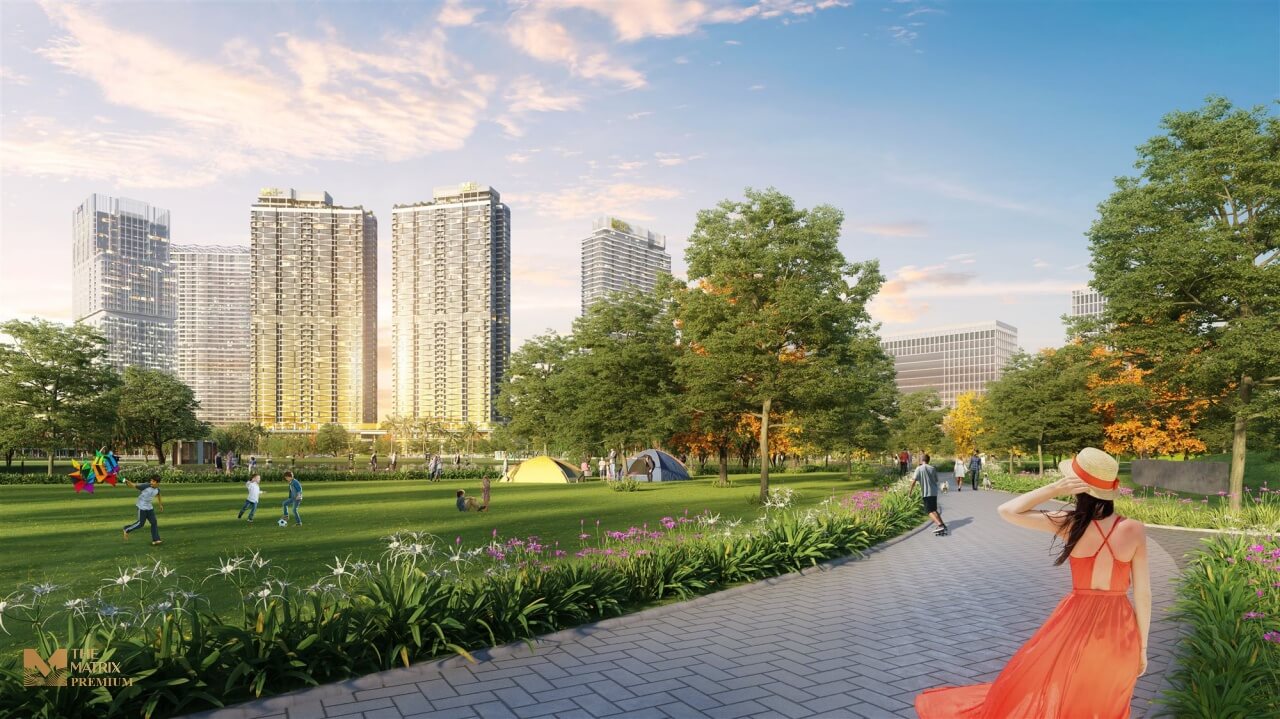 • Ngoài ra, dự án còn sở hữu “lá phổi xanh” đặc biệt - khu công viên quy mô hơn 14ha nằm ngay đối diện dự án. Đây là lợi thế vượt trội giúp nâng cao giá trị căn hộ tại The Matrix Premium. Với tầm nhìn ôm trọn công viên hồ điều hòa, cư dân The Matrix One được hưởng đặc quyền vô cùng đẳng cấp không khác gì khu nghỉ dưỡng trong một không gian xanh tươi mát.