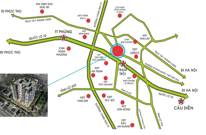• Khu nhà ở xã hội Tân Lập nằm trên mặt đường quốc lộ 32, dự án cách Nhổn 3,5 cây, các SVĐ Quốc Gia Mỹ Đình 15p đi ô tô, gần cá trường ĐH như: Công nghiệp, Giao thông vận tải, Thương mại, Mỏ-Địa chất, … Nhà ở xã hội Tân Lập Residence được thừa hưởng tiện ích đồng bộ từ chuỗi các KĐT mới xung quanh như: Xuân Phương, Vân Canh, Kim Chung – Di Trạch … nằm trên vị trí quan trọng, có vai trò nối các khu vực huyện Đan Phượng với Trung tâm thành phố Hà Nội, là mục tiêu phát triển mở rộng về phía Tây của Thủ đô Hà Nội.