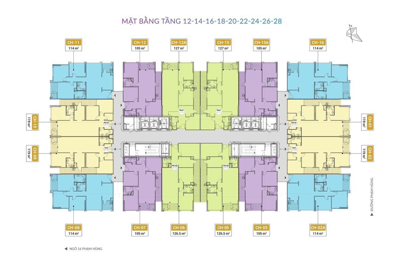 • Diện tích căn hộ: 105m2 – 127m2 (3 PN và 3 PN+1)