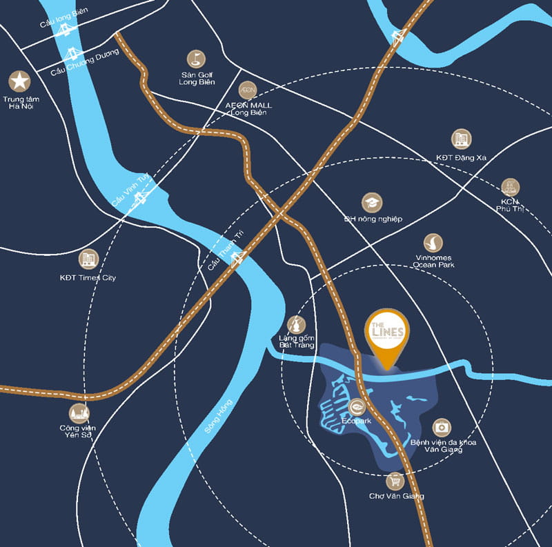 • Đường vành đai 4 sau khi được hoàn thành và đưa vào sử dụng sẽ mở ra nhiều cơ hội cùng với khả năng hợp tác đầu tư giữa các tỉnh ven đô Hà Nội như Hưng Yên, Bắc Ninh, Vĩnh Phúc,… tạo tiền đề thúc đẩy các hoạt động giao thương, vận tải trong toàn khu vực nói chung, cũng như sức nóng của thị trường bất động sản phía Đông nói riêng. Với lợi thế vị trí hấp dẫn, Chung cư The Lines đóng vai trò là nơi giao hoà giữa cư dân với thiên nhiên xanh bao trọn khu vực; Giữa tinh hoa văn hoá Việt với nghệ thuật trải nghiệm phong cách sống đẳng cấp - tinh tế - sang trọng; Là nơi khởi nguồn cuộc sống thịnh vượng, chốn an cư lý tưởng chờ đón chủ nhân tinh hoa, xứng tầm đẳng cấp.