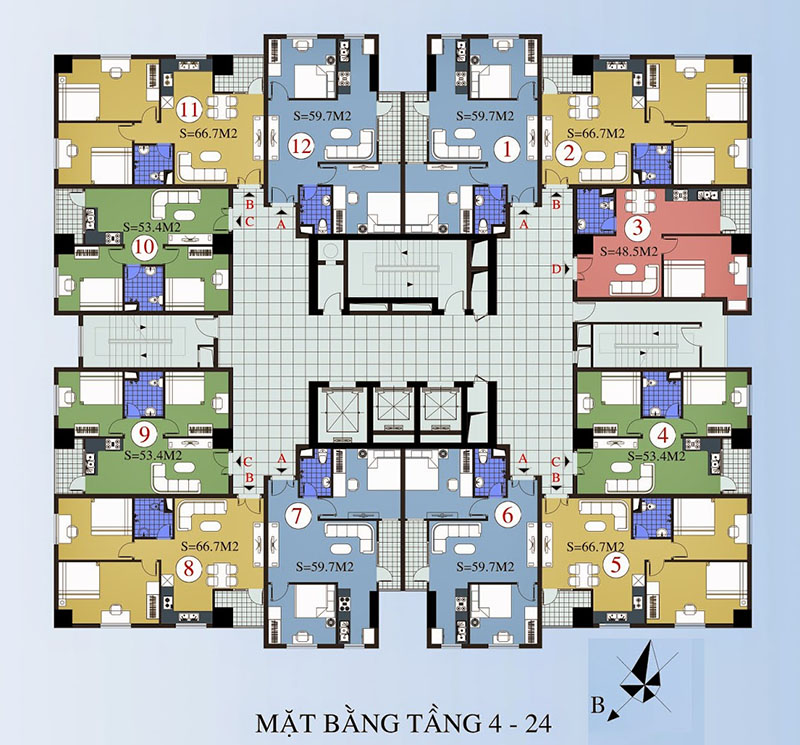 • Quy mô: 24 tầng với 2 tầng hầm, 3 tầng TTTM và 20 tầng căn hộ